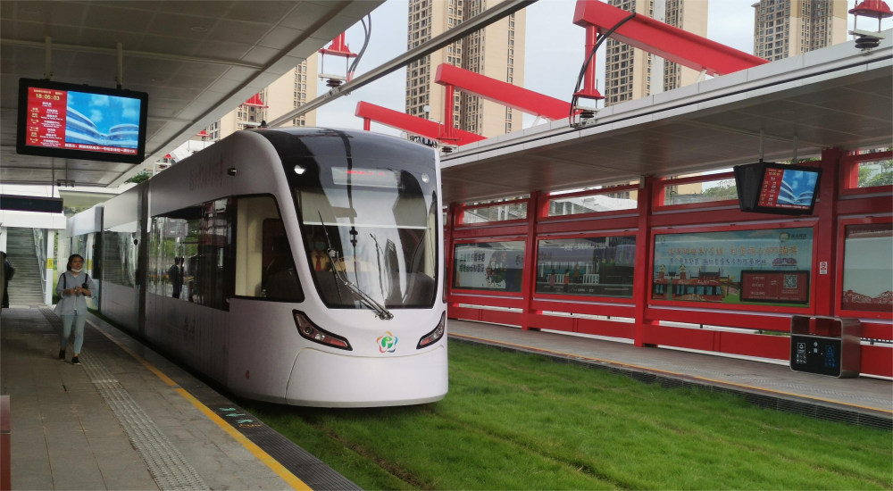 广州有轨电车1号线起于地铁六号线香雪站、止于永和站,全长约14.4公里,于2020年1月开通运营。1号线车辆采用新型能源有轨电车,电车使用超级电容充电模式,能够回收车辆刹车过程中80%以上的能量。同时,车辆采用隔音材料,行驶噪音相比道路机动车辆大幅降低15%以上。